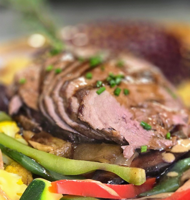 Vitelotte fumé et légumes du moment